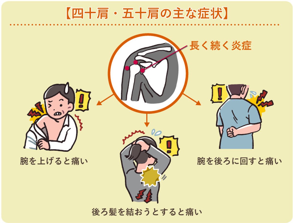このようなお悩みは、**五十肩(肩関節周囲炎)**の可能性があります。