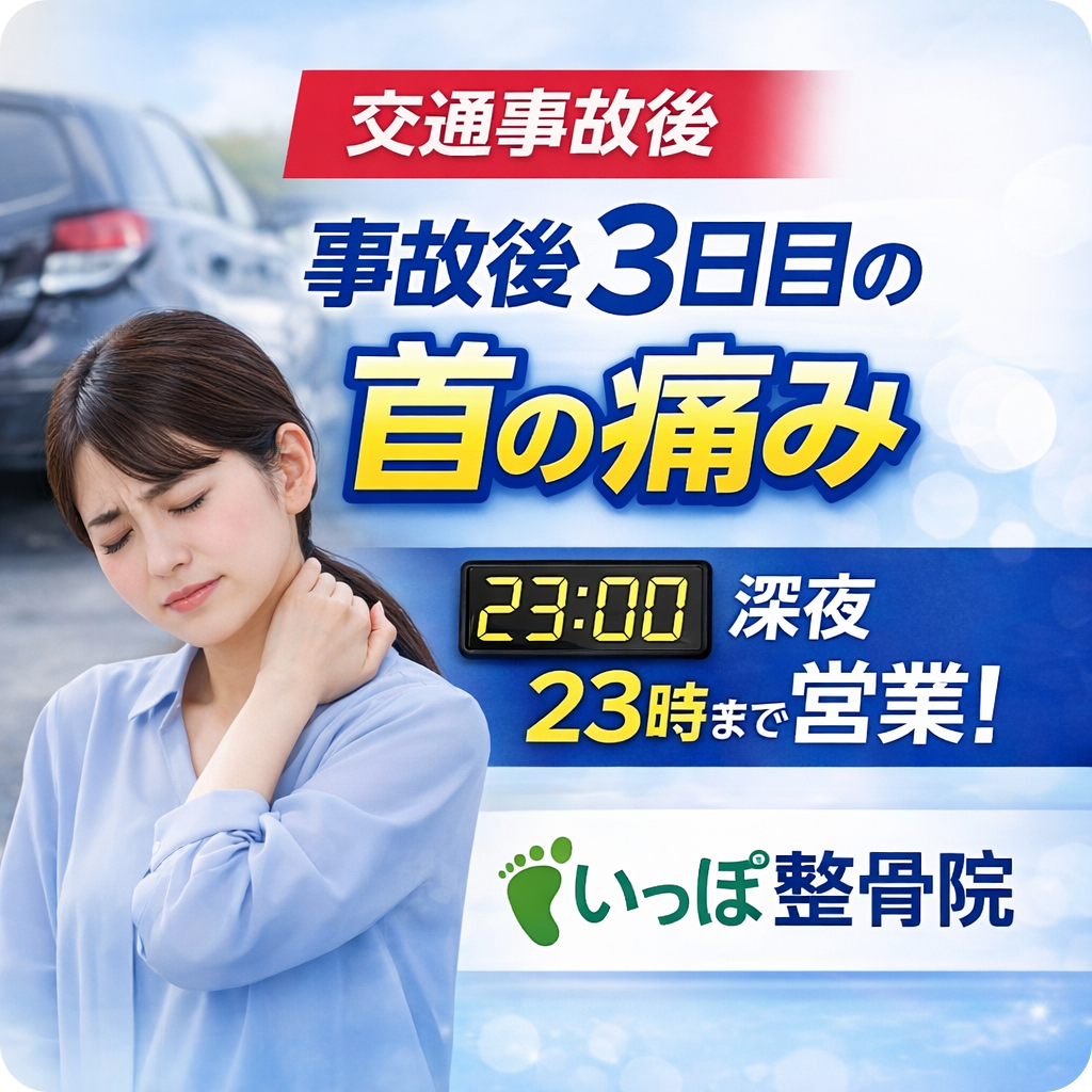交通事故後3日目から首が痛い…むち打ちの遅発症状と対処法|旭区・瀬谷区対応いっぽ整骨院